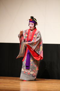 志田先生による実演は、優雅な古典舞踊の女踊り「諸屯」と、軽快な雑踊り「浜千鳥」。とりわけ女踊りは、異世界の存在が立ち現れたかのような神々しさと艶かしさで、会場を圧倒しました。