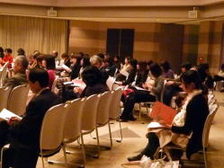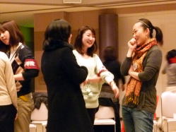 | 終了後は、在学生、文化系卒業生との交流会を行いました。 先輩たちからは発表の仕方についてのアドヴァイスや、暖かい励ましの言葉をいただいて、とても有意義な時間となりました。 |